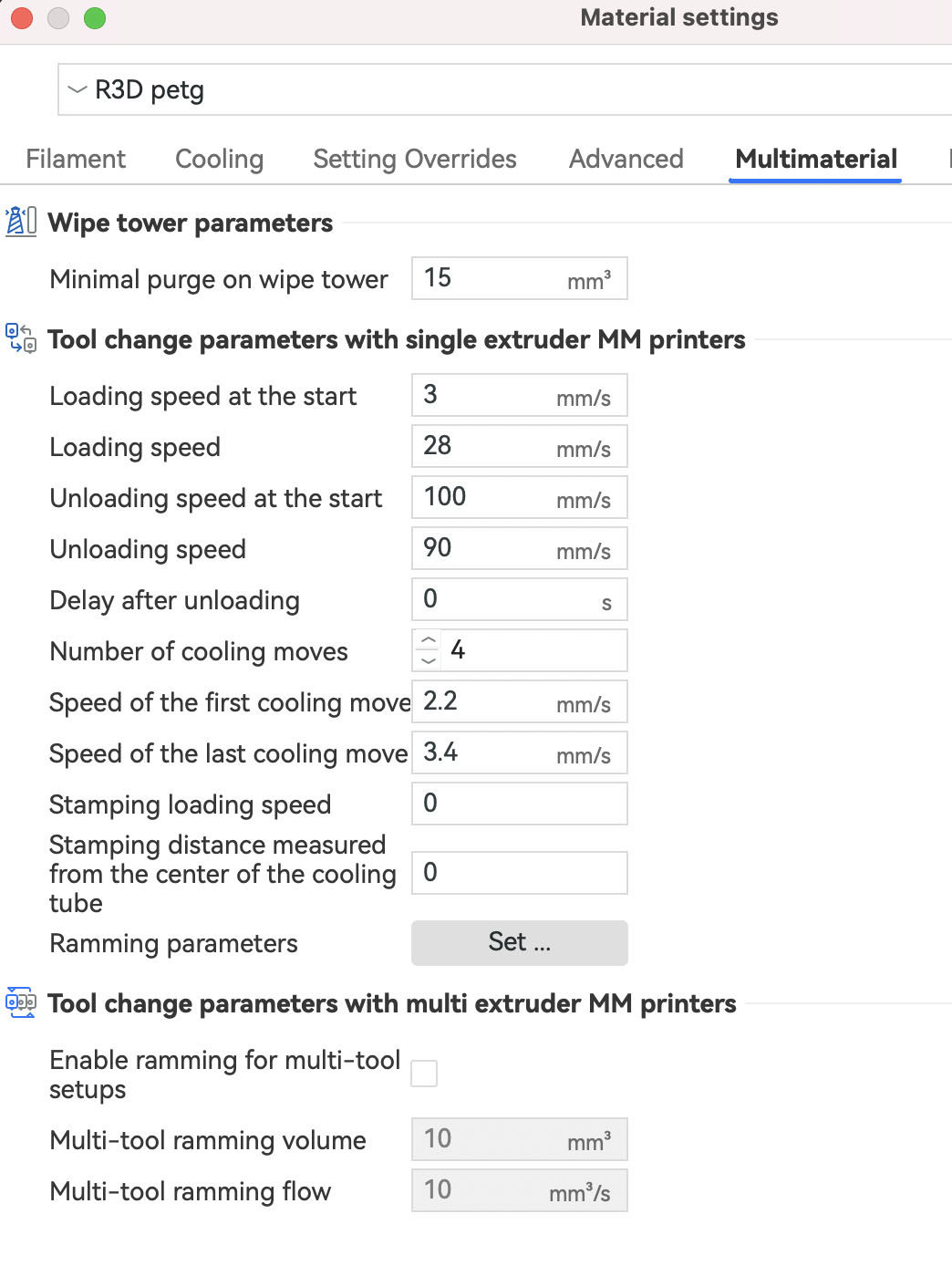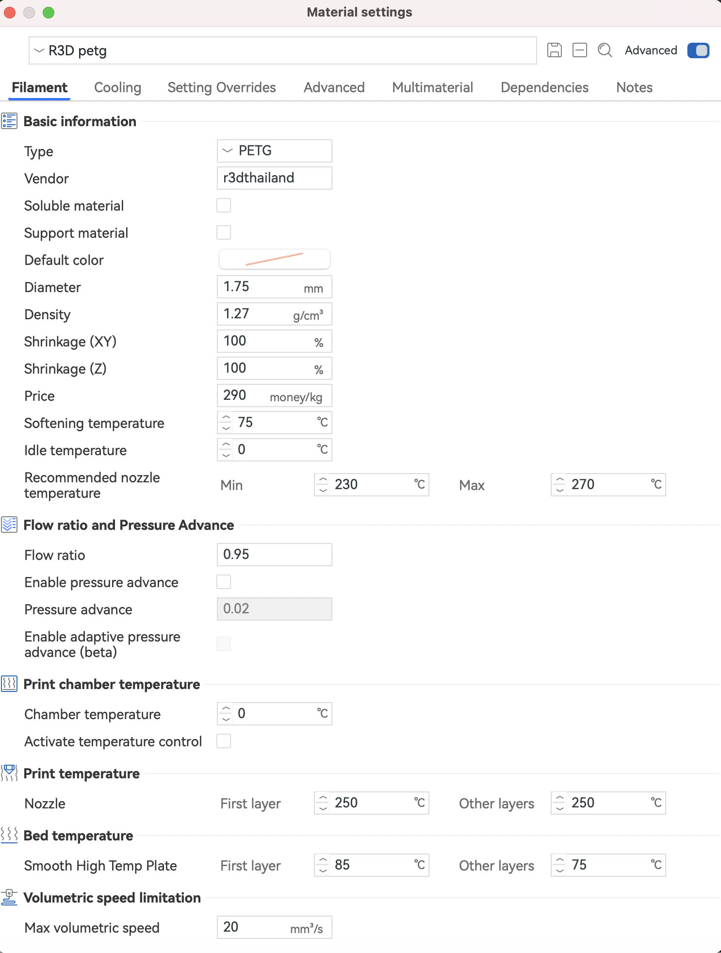 - ค่าการตั้งค่าพื้นฐาน (Filament Settings)