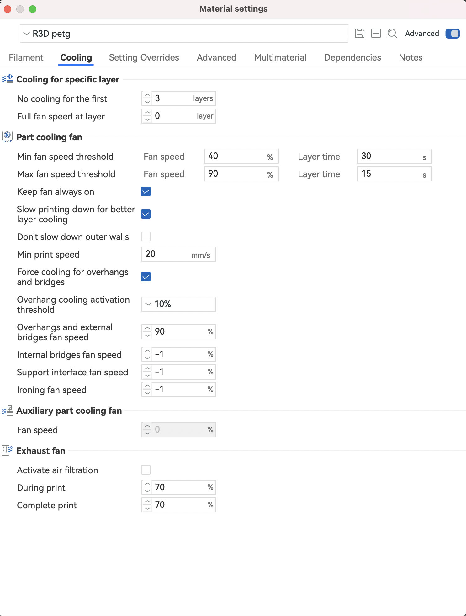- Overhang Cooling: 10% threshold, 90% fan speed